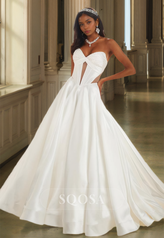 Beaded Sweetheart Off-Shoulder Cutout Formal Gowns Sleeveless Pleated Floor-Length A-Line Prom Dress