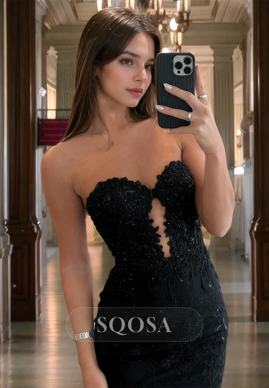 Allover Lace Illusion Cutout Sweetheart Sleeveless Mermaid Floor Length Prom Dress