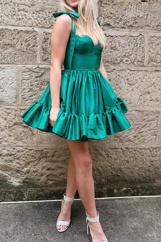 Spaghetti Straps Ruffles Green Short Homecoming Dress QS2417