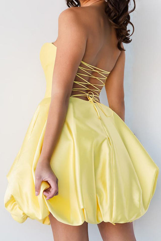 A Line Sweetheart Satin Yellow Cute Homecoming Graduation Dress QH2346