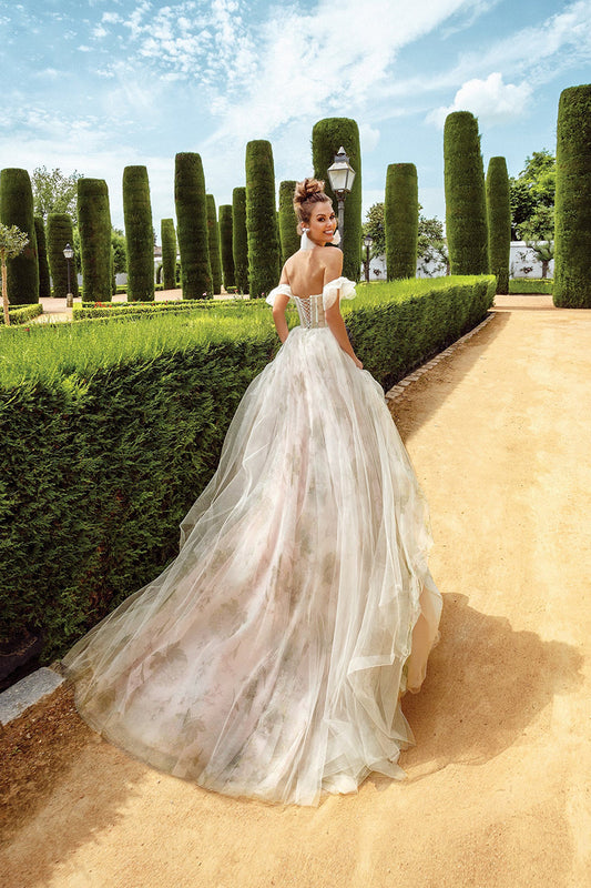 A line Sweetheart Appliques Floral Boho Wedding Dress with Court Train QW2671